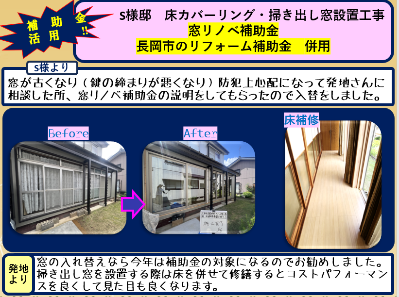 S様邸 床カバーリング・掃き出し窓設置工事 補助金併用